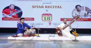 तीर्थंकर महावीर यूनिवर्सिटी के ऑडिटोरियम में जाने-माने सितार वादक पंडित हरविन्दर शर्मा और युवा तबला वादक उजिथ उदय कुमार की अविस्मरणीय प्रस्तुति मुरादाबाद। तीर्थंकर महावीर यूनिवर्सिटी, मुरादाबाद में जाने-माने सितार वादक पंडित डॉ. हरविन्दर शर्मा और युवा तबला वादक उजिथ उदय कुमार की जुगलबंदी- सितार रेसाटाइल पर संगीत प्रेमियों से …