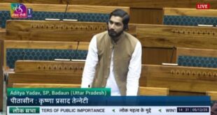 नई दिल्ली/बदायूं। समाजवादी पार्टी के युवा व सक्रिय सांसद आदित्य यादव ने एक बार फिर अपने संसदीय क्षेत्र बदायूं के किसानों की आवाज़ बुलंद करते हुए लोकसभा के शीतकालीन सत्र में बेहद महत्वपूर्ण मुद्दा जोरदार तरीके से उठाया। किसानों की समस्या को केन्द्र में रखकर जिस सारगर्भित, तथ्यपूर्ण और संवेदनशील …
