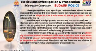 पुलिस महानिदेशक महोदय, उ0प्र0 के आदेश से संचालित #Operation_Conviction अभियान के तहत #SSP_BDN के पर्यवेक्षण मे बदायूं पुलिस की प्रभावी पैरवी से दुष्कर्म करने वाले अभियुक्त को माननीय न्यायालय द्वारा 10 वर्ष का कारावास की सजा एवं 40,000 /-रु0 अर्थदण्ड से दण्डित किया गया।
