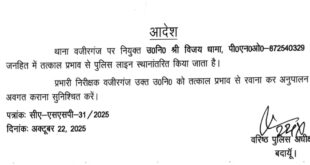 ब्रेकिंग उप निरीक्षक को थाना वजीरगंज से लाइन हाजिर किया गया है।