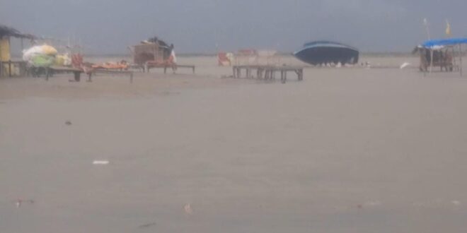 कछला गंगा का जलस्तर बढ़ने से एक दर्जन से अधिक दुकानों में भरा पानी, हजारों रुपए का हुआ नुकसान