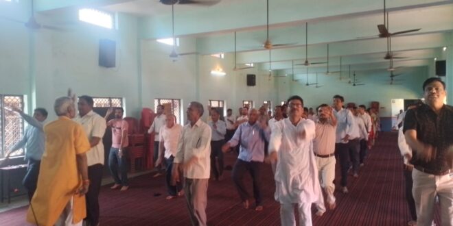 योगाचार्य सर्वेश पाठक ( विभाग कुटुंब प्रबोधन प्रमुख, राष्ट्रीय स्वयंसेवक संघ बदायूं) ने योग की विभिन्न क्रियाएं भस्त्रिका प्राणायाम, अनुलोम विलोम,भ्रामरी प्राणायाम, कपालभाति, सूक्ष्म व्यायाम, सूर्य नमस्कार जैसी योगिक क्रियायों के बारे में इनसे होने वाले लाभों के बारे में विस्तार से जानकारी के साथ-साथ अभ्यास कराया.