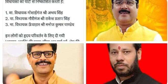 समाजवादी पार्टी से आख़िरकार 3 बागी विधायको को निष्कासित किया। Govind Deval June 23, 2025 238 Views Spread the love*समाजवादी पार्टी से आख़िरकार 3 बागी विधायको को निष्कासित किया।*😇 👇 अभय सिंह , गोसाईगंज राकेश प्रताप सिंह , गौरीगंज मनोज पांडेय , ऊँचाहार Spread the love