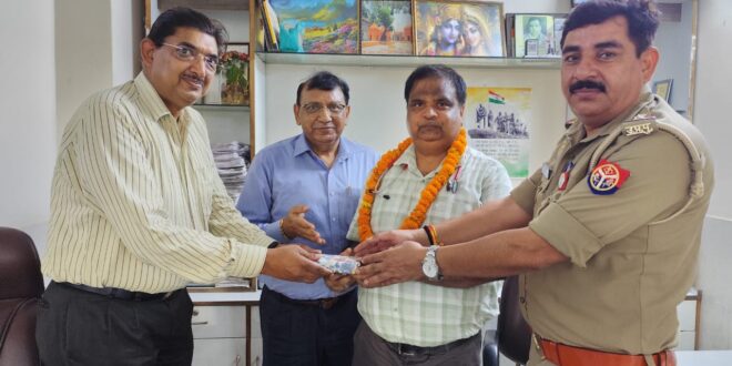 बिसौली। रोटरी क्लब के नवनियुक्त अध्यक्ष संजय गर्ग, सचिव मुदित अग्रवाल एवं इंस्पेक्टर हरेंद्र सिंह ने डॉक्टर डे पर नगर के वरिष्ठ चिकित्सक डॉ. मनोज महेशवरी क़ो प्रतीक चिन्ह देकर सम्मानित किया