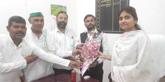 किसान यूनियन के पदाधिकारियों ने नवागत महिला अपर जिला अधिकारी को उपहार भेंट कर दी बधाईयां