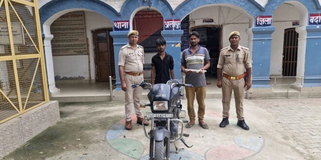 दिनाँक 26.06.25 को थाना अलापुर ग्राम म्याऊँ के सरकारी स्कूल के मैदान से बाइक चोरी की घटना के सम्बन्ध में वादी सुरजीत पुत्र टीकम सिंह निवासी ग्राम अहमद नगर रूखाडा थाना उसावा जनपद बदायूँ की तहरीर पर मु0अ0सं0 224/2025 धारा 303(2) बीएनएस बनाम अज्ञात पंजीकृत किया गया। वरिष्ठ पुलिस अधीक्षक, बदायूँ के निर्देशन में पुलिस अधीक्षक नगर एवं क्षेत्राधिकारी दातागंज व थानाध्यक्ष श्री उदयवीर सिंह थाना अलापुर बदायूँ के पर्यवेक्षण एवं उ0नि0 श्री देवेन्द्र सिंह के नेतृत्व में पुलिस टीम थाना अलापुर द्वारा दिनांक 05.05.2025 को अपराध व अपराधियों के विरुद्ध चलाये जा रहे अभियान के तहत मुखबिर की सूचना पर त्वरित कार्यवाही करते हुए उ0नि0 श्री देवेन्द्र सिंह द्वारा अपने नेतृत्व मे टीम गठित कर मुखबिर के बताये स्थान पर दबिश दी गई। पुलिस टीम थाना अलापुर द्वारा अभियुक्तगण 1. परवेज उर्फ टीकू पुत्र अब्दुल वहीद 2. अख्लाक पुत्र इकरार उददीन नि0गण ग्राम भन्दरा थाना उसहैत जिला बदायूँ मय हीरो स्पलेंडर प्लस मोटरसाईकिल नं0 UP24AU5116 के गिरफ्तार किया गया तथा जामा तलाशी ली गई तो अभियुक्त परवेज उपरोक्त से एक अदद तमंचा 12 बोर व 02 जिन्दा कारतूस 12 बोर बरामद हुए, जिसके सम्बन्ध में अभियुक्त परवेज उपरोक्त के विरूद्ध अभियोग पंजीकृत किया गया।