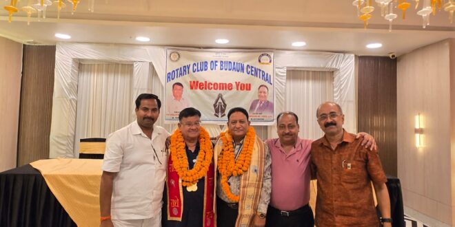 आज रोटरी क्लब ऑफ बदायूं सेंट्रल के नवीन सत्र की पहली मीटिंग होटल फोर लीफ में संपन्न हुई जिसमे निवर्तमान अध्यक्ष अनिल गुप्ता ने नए अध्यक्ष PHF विपिन कुमार अग्रवाल को एवं निवर्तमान सचिव डॉ संजीव गुप्ता ने नए सचिव मुनेन्द्र कुमार सिंह एडवोकेट को कॉलर पहनाकर और सीट बदलकर कार्यभार सौंपा। रोटरी सदस्यों ने करतल ध्वनि से स्वागत किया। सचिव मुनेन्द्र कुमार सिंह ने अध्यक्ष विपिन अग्रवाल द्वारा गठित कार्यकारिणी से सभी सदस्यों को अवगत कराया। कार्यकारिणी में अध्यक्ष, सचिव के अलावा उपाध्यक्ष प्रदीप गुप्ता, क्लब ट्रैनर दीपक सक्सेना, आई पी पी अनिल गुप्ता ठेकेदार, ज्वाइंट सेक्रेटरी मुकेश रस्तोगी, सार्जेंट एट आर्म्स अनिल गुप्ता सीमेंट, तथा एडवाइजरी बोर्ड में दीपक सक्सेना, कुलदीप रस्तोगी, संजय रस्तोगी, आमोद चाणक्य, डॉ संजीव गुप्ता को रखा गया है।