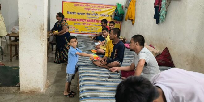 वजीरगंज के चिम्मन शू स्टोर के नाती का जन्मदिन विकलांग आश्रम वजीरगंज मनाया गया।