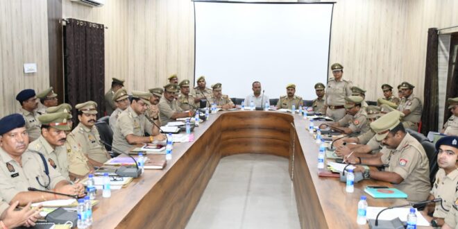 आज रिजर्व पुलिस लाईन, बदायूँ सभागार में पुलिस उपमहानिरीक्षक, बरेली परिक्षेत्र, बरेली अजय कुमार साहनी द्वारा वरिष्ठ पुलिस अधीक्षक, बदायूँ डा0 बृजेश कुमार सिंह के साथ *आगामी त्यौहार, श्रावण मास एवं कांवड़ यात्रा को सकुशल संपन्न कराने एवं जनपद की कानून एवं शान्ति व्यवस्था, अपराध समीक्षा आदि विषयों पर समस्त अधिकारीगण एवं थाना प्रभारियों के साथ गोष्ठी आयोजित की गयी। गोष्ठी के दौरान आगामी कांवड़ यात्रा को सकुशल संपन्न कराने एवं जनपद की कानून व्यवस्था को सुदृढ़ बनाए रखने हेतु आवश्यक दिशा-निर्देश दिये गये।* गोष्ठी में अपर पुलिस अधीक्षक नगर श्री विजयेन्द्र द्विवेदी, अपर पुलिस अधीक्षक ग्रामीण डॉ0 कृष्ण कान्त सरोज, पुलिस उपाधीक्षक लाइन/उझानी/यातायात डॉ0 देवेन्द्र कुमार, पुलिस उपाधीक्षक नगर रजनीश कुमार, पुलिस उपाधीक्षक सहसवान कर्मवीर सिंह, पुलिस उपाधीक्षक दातागंज के0 के0 तिवारी एवं प्रतिसार निरीक्षक रिजर्व पुलिस लाइन बदायूँ इन्द्रजीत सिंह एवं जनपद के समस्त थाना प्रभारी/थानाध्यक्ष व शाखा प्रभारी मौजूद रहें ।