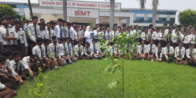 बी0आई0एम0टी0 कालेज बदायूँ में वुद्धवार को वन महोत्सव के उपलक्ष्य में शासन द्वारा चलाये जा रहे ’’एक पौधा माँ के नाम’’ अभियान के अंतर्गत कालेज डायरेक्टर अक्षज रस्तोगी द्वारा पौधा रोपण किया गया जिसमें छात्र-छात्राओं ने भी उत्साह पूर्वक प्रतिभाग किया। पौधा रोपण कार्यक्रम मेें विभिन्न प्रकार के पौधे जैसे – आम, नीम, शीशम, सागौन, जामुन, कनेर, गुडहल, अर्जुन आदि के पौधों को रोपित किया गया इस अवसर पर कालेज डायरेक्टर अक्षज रस्तोगी ने छात्र-छात्राओं को सम्बोधित करते हुए कहा कि – पेड़-पौधे तापमान को कम करने के साथ ही राहगीरो को छाया, पक्षियों को आश्रय तथा जीवन दायक गैस आॅक्सीजन देने का भी काम करते है जिससे पृथ्वी पर जीवन सम्भव हो पाता है ! उन्होने सभी विद्यार्थिंयों से कम से कम एक पौधा लगाने व उसके संरक्षण का संकल्प लिया।