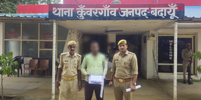 दिनांक 09.07.2025 को पीआरवी 1284 थाना कुंवरगाँव बदायूँ पर कॉलर श्रीमती गुलशन पत्नी कमरुदीन नि0 ग्राम हुसैनपुर थाना कुंवरगाँव जनपद बदायूँ ने सूचना दी कि मुशर्रफ पुत्र अमीर हसन नि0 ग्राम हुसैनपुर थाना कुंवरगाँव जनपद बदायूँ मेरे साथ झगडा कर तमन्चे से गोली मारने की धमकी दे रहे है। सूचना पर थाना कुंवरगाँव पुलिस मौके पर पहुंची तथा प्रतिवादी मुशर्रफ पुत्र अमीर हसन नि0 ग्राम हुसैनपुर थाना कुंवरगाँव जनपद बदायूँ को मौके से गिरफ्तार किया गया। गिरफ्तार अभियुक्त मुशर्रफ पुत्र अमीर हसन नि0 ग्राम हुसैनपुर थाना कुंवरगाँव जनपद बदायूँ के कब्जे से एक अदद नाजायज तमन्चा 315 बोर व एक अदद नाजायज पौनिया 12 बोर बरामद हुये। गिरफ्तारी एवं बरामदगी के आधार पर मुशर्रफ उपरोक्त के विरूद्ध मु0अ0सं0 120/25 धारा 3/25 (1-B)(a) आर्म्स एक्ट पंजीकृत किया गया। गिरफ्तार शुदा अभियुक्त मुशर्रफ उपरोक्त को माननीय न्यायायलय के समक्ष पेश किया गया।