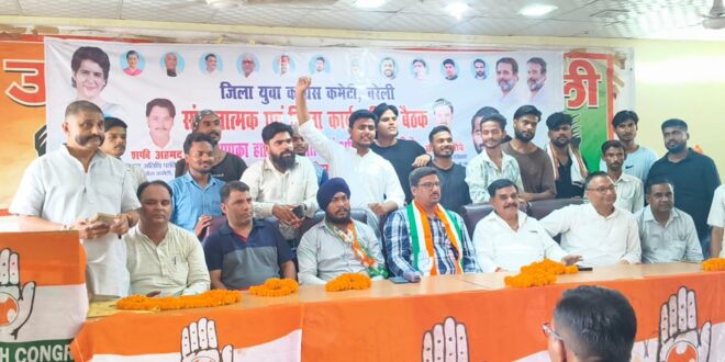 बरेली — जिला युवा कांग्रेस कमेटी बरेली की जिला कार्यकारिणी की बैठक आज उपजा प्रेस क्लब में सम्पन्न हुई। बैठक में सभी पदाधिकारियों का सत्यापन किया गया और संगठन को सशक्त बनाने पर चर्चा हुई।