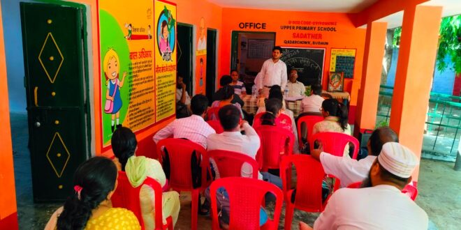 कादर चौक विकासखंड की न्याय पंचायत बाराचिर्रा की जुलाई माह की न्याय पंचायत स्तरीय शिक्षक संकुल बैठक का आयोजन 15.07.2025 दिन मंगलवार को बाराचिर्रा न्याय पंचायत के उच्च प्राथमिक विद्यालय सदाठेर में रत्नेश कुमार एआरपी (विज्ञान) की अध्यक्षता में अपराह्न 1:30 बजे से प्रारंभ होकर 3:00 बजे तक संपन्न हुई, जिसमें मुख्य एजेंडा बिंदुओं पर विस्तार से चर्चा की गई। मीटिंग में पहुंचे कादर चौक खंड शिक्षा अधिकारी दिलीप कुमार ने यू-डायस स्टूडेंट प्रोफाइल को अपग्रेशन करने के लिए विशेष जोर दिया। साथ ही जिला बेसिक शिक्षा अधिकारी वीरेंद्र कुमार सिंह ने कहा कि हाउसहोल्ड सर्वे 2025 के अनुसार बच्चों को चिन्हित कर नामांकन अवश्य कर लें एवं नए प्रवेशांक के लिए अभिभावकों से संपर्क कर नये बच्चों के प्रवेश के लिए प्रोत्साहित करें। शिक्षक संकुल राजीव कुमार जौहरी ने कहा कि प्रत्येक माह पीटीएम और एसएमसी बैठकों का सफल आयोजन करते रहें। शिक्षक संकुल परमानंद ने कहा समर्थ एप के माध्यम से दिव्यांग बच्चों की प्रतिदिन उपस्थिति ऑनलाइन लगाते रहें । शिक्षक संकुल अल्पेश कुमार वैश्य ने कहा कि शारदा ऐप पर ड्रॉप आउट बच्चों को पंजीकृत अवश्य करें। शिक्षक संकुल कामिनी रानी ने कहा कि कक्षा 3 से 8 तक के बच्चों में भाषा एवं गणित की निर्देशिकाओं के माध्यम से गतिविधियां करवाते रहें। नोडल शिक्षक संकुल जमीर अहमद ने कहा की कक्षा एक एवं दो के बच्चों में भाषा व गणित के लक्ष्यों को शत प्रतिशत प्राप्त करने का कार्य करते रहें । एआरपी (विज्ञान) रत्नेश कुमार ने शब्द संकेत, छुट्टी के बाद बच्चे लयबद्ध तरीके से घर जाएं। और स्मार्ट क्लास पर विस्तृत चर्चा की। साथ ही पाठ योजना, टीएलएम, गणित/ विज्ञान किट का प्रयोग नियमित करते रहें।