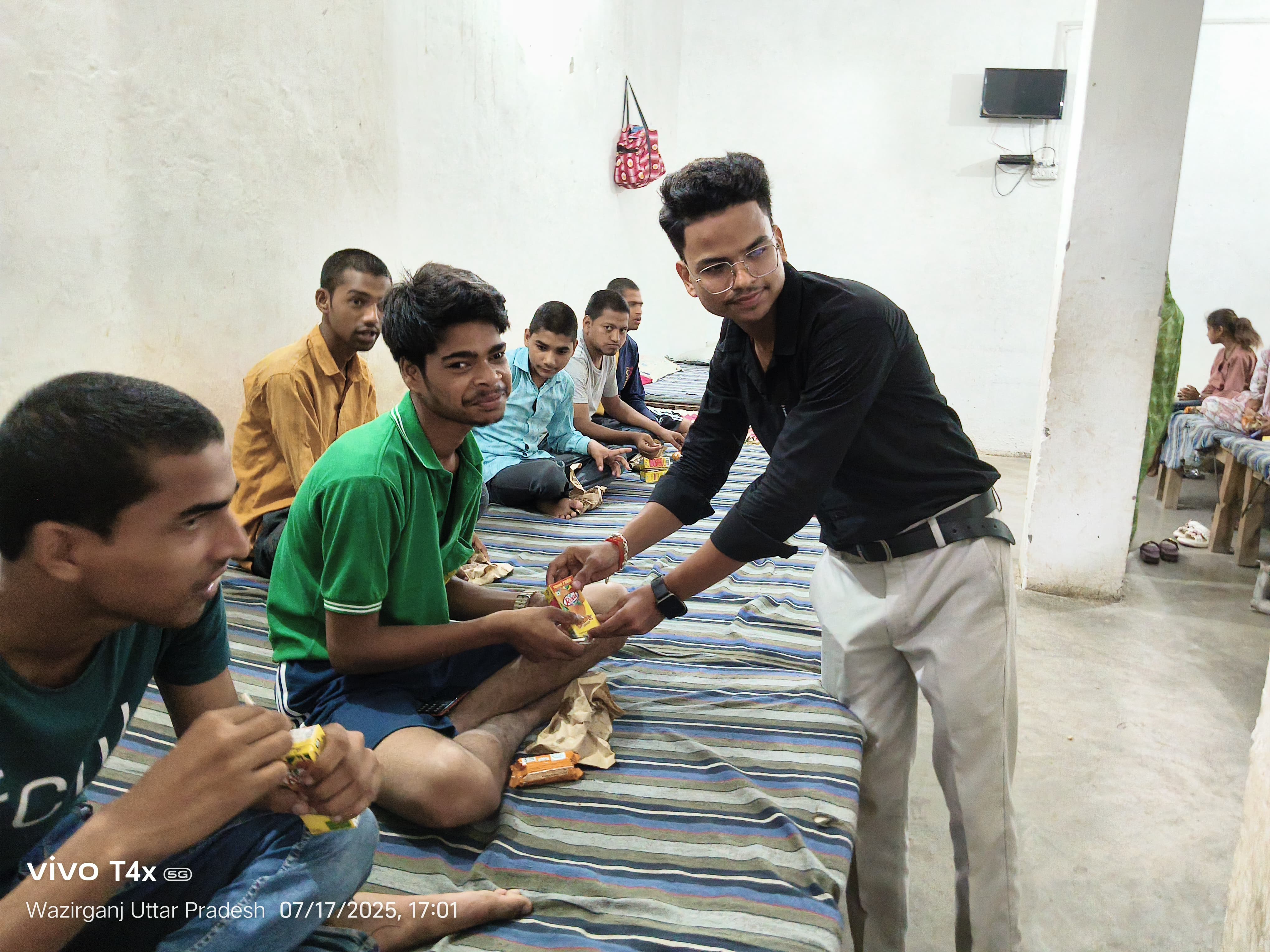 वजीरगंज निवासी रामकिशोर पंडित ने अपने पुत्र का जन्मदिन विकलांग आश्रम वजीरगंज में बड़े ही धूम धाम से मनाया। रामकिशोर पंडित के पुत्र कृष्णमणि पंडित ने विकलांग आश्रम वजीरगंज में रह रहे सभी बच्चों के साथ मनाया। ओर आश्रम में रह रहे सभी बच्चों को फ्रूटी एवं फल व मिठाई वितरित की। आश्रम के सभी विकलांग बेसहारा बच्चों के चेहरे खिल उठे। वही बच्चे के पिता ने बताया हम सबको मानव सेवा ही मानवता है।नर सेवा नारायण सेवा। इसलिए ही मैने अपने पुत्र का जन्मदिन विकलांग आश्रम वजीरगंज मनाया है, ओर आगे भी सहयोग करता रहूंगा।वही आश्रम वजीरगंज प्रभारी सुनीरा गौर ने मां बगला मुखी का फोटो देकर सम्मानित किया ओर दीर्घ आयु की कामना की। इस मौके पर अध्यक्ष उनीश पाल सिंह यादव ने उनका बहुत बहुत आभार व्यक्त किया। आश्रम अध्यक्ष उनीश पाल सिंह ने बताया यह आश्रम आप सभी के सहयोग से चल रहा है। इस मौके पर कृष्णमणि ओर उनके दोस्त आश्रम पहुंचे और उनका जन्मदिन विकलांग आश्रम वजीरगंज में मनाया। इस मौके पर कृष्णमणि पंडित, कुश वार्ष्णेय, अनुभव यादव,आकाश कुमार, सर्वेश उपाध्याय, उनीश पाल सिंह यादव, चंचल यादव, सुनीरा गौर सहित आश्रम वासी मौजूद रहे