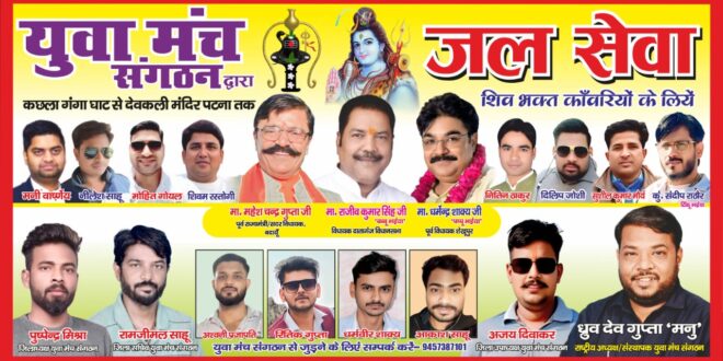 बदायूं युवा मंच संगठन के द्वारा शिव भक्त कावरियों के लिये जल सेवा वाहनों में 1 लाख पानी के पैकेट जल सेवा एवं पुष्प वर्षा वाहनों को *स्थान : बदायूं गौरी शंकर मंदिर से समय दुपहर 03:00 तीन बजे* जनप्रतिनिधियों के द्वारा भगवा झंडा दिखा कर रवाना किया जायेगा।