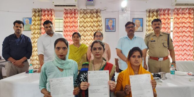 बिसौली। अपर जिलाधिकारी डा. वैभव शर्मा एवं एसडीएम राशि कृष्णा ने वाल विकास विभाग के तत्वाधान मे आंगनवाड़ी के रिक्त पदों पर चयन संसोधन प्रक्रिया के बाद तीन नवचयनित आंगनवाड़ी कार्यकत्रियों क़ो नियुक्ति पत्र वितरित किए। तहसील सभागार मे ब्लॉक क्षेत्र के क़स्बा मुड़िया धुरेकी के वार्ड पांच की दीप्ती शर्मा, पापगांव की मंजू शर्मा, नसरोल तृतीय की सुमनलता क़ो नियुक्ति पत्र सौंपे। डा. वैभव शर्मा ने आंगनबाड़ियों से कहा कि उनकी नियुक्ति महत्वपूर्ण पद पर हो रही है। यह बड़ी जिम्मेदारी है। इस पर आप सभी को खरा उतरकर काम करना है। इस दौरान तहसीलदार विजय कुमार शुक्ला, सीओ सुनील कुमार सिंह, सीडीपीओ अल्पना जौहरी, इंस्पेक्टर हरेंद्र सिंह, नायब तहसीलदार गिरिजा शंकर यादव, नायब तहसीलदार सृजन यादव आदि अधिकारी कर्मचारी उपस्थित रहे।