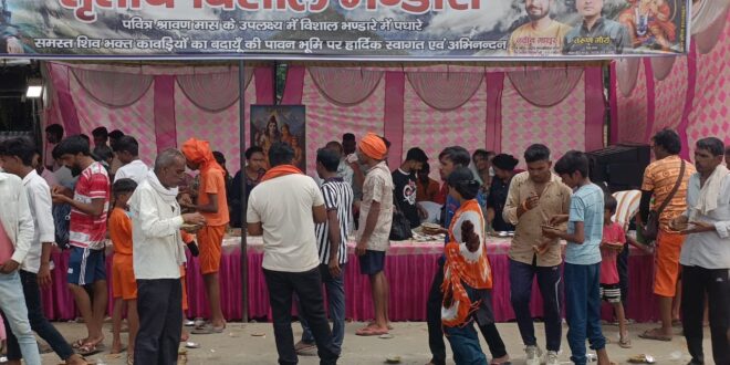 शिव भक्त तरूण मौर्य ने कहा कि भोले के भक्तों को भोजन कराना पुनित कार्य होता है। इसी भावना को ध्यान में रखकर हमने प्रथम विशाल भंडारे आयोजन किया है मौके पर नीलम सक्सेना,श्रुति सक्सेना तान्या सक्सेना उज्जवल मौर्य,शोभित यादव,गुलशनआदि लोग भण्डारे में मौजूद रहे