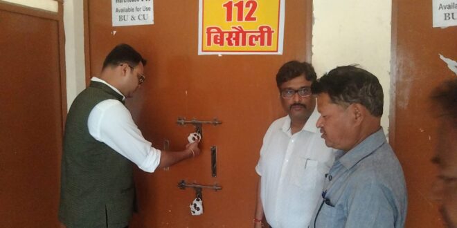 बदायूँ : 24 जुलाई। जिला निर्वाचन अधिकारी अवनीश राय ने मान्यता प्राप्त राजनीतिक दलों के प्रतिनिधियों के साथ कलेक्ट्रेट में स्थापित ईवीएम व वीवीपीएटी वेयरहाउस का बाह्य निरीक्षण किया। उन्होंने वहां सीसीटीवी से की जा रही निगरानी को देखा। ईवीएम व वीवीपीएटी पूर्ण रूप से सुरक्षित हैं। वेयरहाउस में 24 घंटे सुरक्षा बल तैनात रहता है। उन्होंने वेयरहाउस में कक्षों पर लगाई गई सीलो को चेक किया तथा आगंतुक पंजिका पर हस्ताक्षर भी किये।