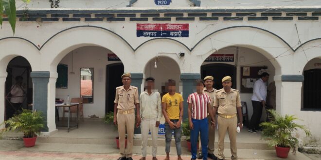 वरिष्ठ पुलिस अधीक्षक,बदायूँ डा0 बृजेश कुमार सिंह के आदेशानुसार अपराध/अपराधियों की गिरफ्तारी हेतु जनपद में चलाए जा रहे अभियान के अन्तर्गत अपर पुलिस अधीक्षक नगर के निर्देशन में एवं क्षेत्राधिकारी नगर के पर्यवेक्षण में तथा थाना प्रभारी बिनावर के कुशल नेतृत्व में आज दिनांक 27.07.25 को थाना बिनावर पुलिस द्वारा मु0अ0सं0 133/25 धारा 70(2) बी0एन0एस0 व धारा 5G/6 पाक्सो एक्ट में वांछित नामित 03 अभियुक्तगण ।. करन पुत्र तिलकराम नि0 ग्राम बहरुआ थाना न्यूरिया जिला पीलीभीत 2. रविन्द्र पुत्र कृष्णपाल कश्यप 3. सोनू पुत्र धर्मेन्द्र निवासी गण विजय नगला थाना बिनावर जनपद बदायूँ को गिरफ्तार कर मा० न्यायालय के समक्ष पेश कर जेल भेजा गया ।