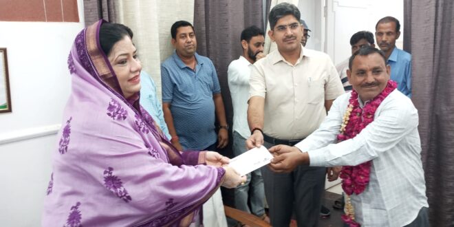 पालिकाध्यक्ष फात्मा रजा ने सेवानिवृत्त कर्मचारी मितान सिंह को 12 लाख 6 हजार 157 रुपये का भुगतान किया