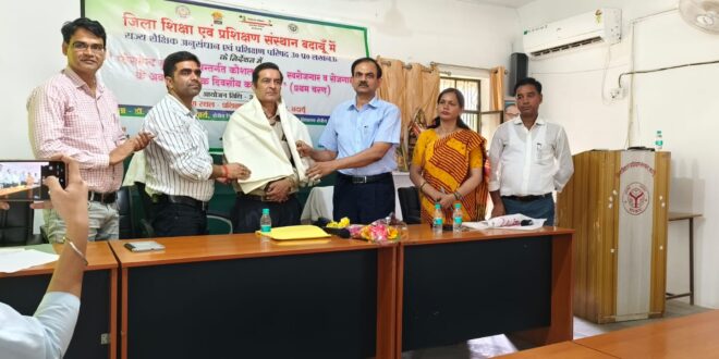 आज दिनांक 31 जुलाई 2025 को जिला शिक्षा एवं प्रशिक्षण संस्थान बदायूं में प्लेसमेंट ड्राइव के अंतर्गत एक दिवसीय कार्यशाला का आयोजन किया गया विश्व कार्यक्रम की अध्यक्षता प्राचार्य डाइट गिरजेश कुमार चौधरी द्वारा की गई उक्त कार्यक्रम में इग्नू के क्षेत्रीय निदेशक श्री डॉ अजय वर्धन आचार्य को मुख्य वक्ता के रूप में आमंत्रित किया गया जिनके द्वारा उक्त कार्यशाला में डीएलएड के समस्त छात्र – छात्राओं हेतु इग्नू के विभिन्न कोर्सेज के बारे में व्यापक दिशा निर्देश प्रदान किए गए छात्र-छात्राओं को अवगत कराया गया की किस प्रकार से शिक्षा के क्षेत्र में तथा अन्य क्षेत्र में स्वरोजगार आधारित इग्नू के पाठ्यक्रम उपयोगी हो सकते हैं तथा छात्र निरंतर अपनी शैक्षणिक उपलब्धियां को अर्जित कर सकते हैं आज की इस आधुनिक युग में रोजगार प्राप्त करने के विभिन्न साधनों पर चर्चा की गई कार्यक्रम का संचालन डायट प्रवक्ता श्रीमती निशा यादव द्वारा किया गया तथा सहयोग में डॉक्टर अमित शर्मा प्रवक्ता डाइट बदायूं श्री दिलीप कुमार मोहम्मद सरवर श्रीमती रजनी सिंह उपस्थित रहे अंत में धन्यवाद ज्ञापन के साथ कार्यक्रम का समापन हुआ