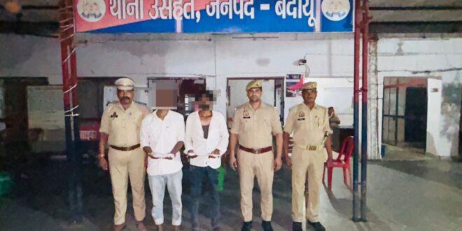 वरिष्ठ पुलिस अधीक्षक,जनपद बदायूँ डॉ0 बृजेश कुमार सिंह के निर्देशन में जनपद में चलाये जा रहे अवैध शस्त्रों की रोकथाम व अपराध करने वाले अपराधियों की गिरफ्तारी के अभियान के अन्तर्गत अपर पुलिस अधीक्षक नगर के कुशल पर्यवेक्षण में थाना उसहैत पुलिस द्वारा आज दिनांक 01.08.2025 को इसरत की लकडी की टाल के पास वार्ड न0 4 से 02 नफर अभियुक्तगण 1.बरहक पुत्र सकील अहमद निवासी वार्ड नं0 8 कस्बा ककराला थाना अलापुर जिला बदायूँ 2.जीशान पुत्र आसमौहम्मद निवासी वार्ड नं0 7 कस्बा ककराला थाना अलापुर जिला बदायूँ मय 02 अदद नाजायज तमंचा (315 बोर) व 06 जिन्दा कारतूस (315 बोर) के गिरफ्तार किया। जिस सम्बन्ध में थाना उसहैत पर मु0अ0सं0 152/2025 धारा 3/25(1-B)(a) A. Act पंजीकृत किया गया है। अग्रिम विधिक कार्यवाही की जा रही है।