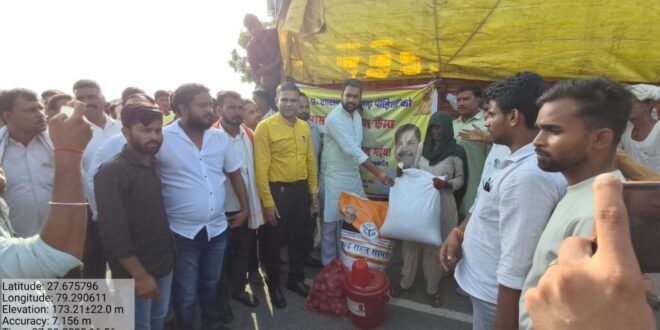 विक्रम सिंह व उप जिलाधिकारी धर्मेंद्र सिंह के नेतृत्व में खाध सामग्री का वितरण ग्राम वासियों को किया गया।
