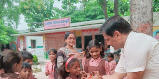 बिसौली। प्राथमिक विद्यालय मदनजुड़ी में शुक्रवार को रक्षाबंधन का त्यौहार मनाया गया। जिसमें सभी छात्राओं ने छात्रों को राखी बांधकर व मिठाई खिलाई उनके उज्जवल भविष्य की कामना की। भाइयों ने अपनी बहनों को गिफ्ट के रूप में कॉपी पेंसिल बिस्कुट आदि भेंट की। वहीं छात्राओं द्वारा अध्यापक अनुज कुमार शर्मा एवं दयानंद के भी राखी बांधी। उन्होंने बच्चों को आशीर्वाद दिया और उनके उज्जवल भविष्य की कामना की। कार्यक्रम के अंत में शिक्षकों ने बच्चों को मिठाई वितरित की। इस अवसर पर अनुज कुमार शर्मा प्रधान अध्यापक, सरिता शर्मा, सीमा यादव, मीना, दयानंद आदि उपस्थित रहे।