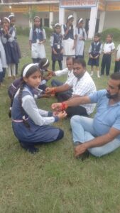 उघैती-आज रक्षाबंधन के मौके पर क्षेत्र के गांव रियोनाई में स्थित श्री कालसेन बाबा इंटर कॉलेज में रक्षाबंधन का त्यौहार बड़े हर्षोल्लाह के साथ मनाया गया इस मौके पर कॉलेज में राखी बनाओ प्रतियोगता का आयोजन किया गया जिसमें छात्रों ने बढ़ चढ़ कर हिस्सा लिया कार्यक्रम का आयोजन अंबिका चौहान एवं सोनम के देखरेख में हुआ प्रतिभागी छात्राओं ने बहुत ही मनमोहक राखियां बनाई सभी छात्राओं ने कॉलेज के एम डी आशीष सक्सेना सहित समस्त अध्यापकों के राखी बांधी इसके साथ ही छात्राओं ने छात्रों के भी राखी बांधकर रक्षाबंधन का त्यौहार मनाया सभी छात्राओं को कॉलेज की प्रधानाचार्या शिल्पी सक्सेना द्वारा पुरस्कृत किया गया इस मौके पर कॉलेज के चेयरमैन महेश चंद्र सक्सेना, डायरेक्टर शेखर सक्सेना,एम डी आशीष सक्सेना , प्रधानाचार्या शिल्पी सक्सेना ,उप प्रधानाचार्य ओम किशन शर्मा जूनियर वर्ग एडमिनिस्ट्रेटर जे पी सिंह प्राइमरी वर्ग एडमिनिस्ट्रेटर दिनेश माथुर जूनियर कॉर्डिनेटर चेतन ,प्राइमरी कॉर्डिनेटर सोनू शर्मा प्री प्राइमरी कार्डिनेटर अंबिका चौहान एवं सोनम,उमेश वार्ष्णेय, पूजा अंजली ,अवधेश,उमेश,अर्पित,सारांश सहित समस्त स्टाफ मौजूद रहा