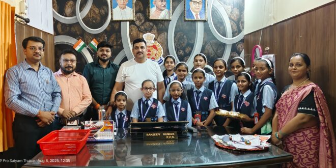बिल्सी :- नगर के बाबा इन्टरनेशनल स्कूल में रक्षाबंधन पर्व के उपलक्ष्य में एक विशेष गतिविधि आयोजित की गई, जिसमें छात्राओं ने अपने हाथों से तिरंगे थीम पर विभिन्न प्रकार की सुंदर राखियाँ बनाईं। इस आयोजन का उद्देश्य न केवल पारंपरिक रक्षाबंधन पर्व को मनाना था, बल्कि देशभक्ति की भावना को भी प्रकट करना था। विद्यालय की छात्राओं ने हाथ से बनी राखियों को उपजिलाधिकारी महोदय, क्षेत्राधिकारी महोदय, थानाध्यक्ष महोदय एवं थाने में तैनात अन्य पुलिसकर्मियों को बांधकर उनका सम्मान किया। छात्राओं ने पुलिस विभाग के योगदान को सराहा और उन्हें समाज की सुरक्षा में निभाई जा रही भूमिका के लिए धन्यवाद दिया।