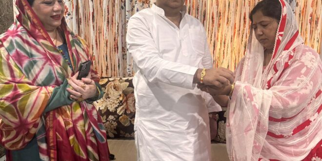 पूर्व मंत्री आबिद रज़ा रक्षाबंधन के पर्व पर शिक्षक नेता सीमा यादव से राखी बंधवाते हुए Govind Deval August 9, 2025 179 Views Spread the loveपूर्व मंत्री आबिद रज़ा रक्षाबंधन के पर्व पर शिक्षक नेता सीमा यादव से राखी बंधवाते हुए Spread the love