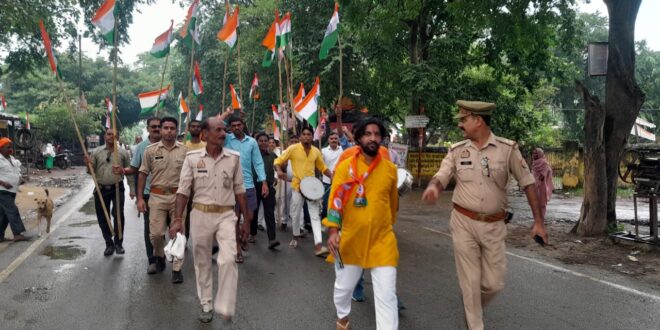 स्थानीय पुलिस चौकी प्रभारी अली मियां जैदी व उपनिरीक्षक चंद्र शेखर सिंह , हेड कांस्टेबल प्यारे लाल , आकाश कुमार ढाका , रामपाल सिंह , छात्र पाल सिंह की मौजूदगी में तिरंगा यात्रा शांति पूर्ण ढंग से हर्षौल्लास के साथ निकाली गई ।