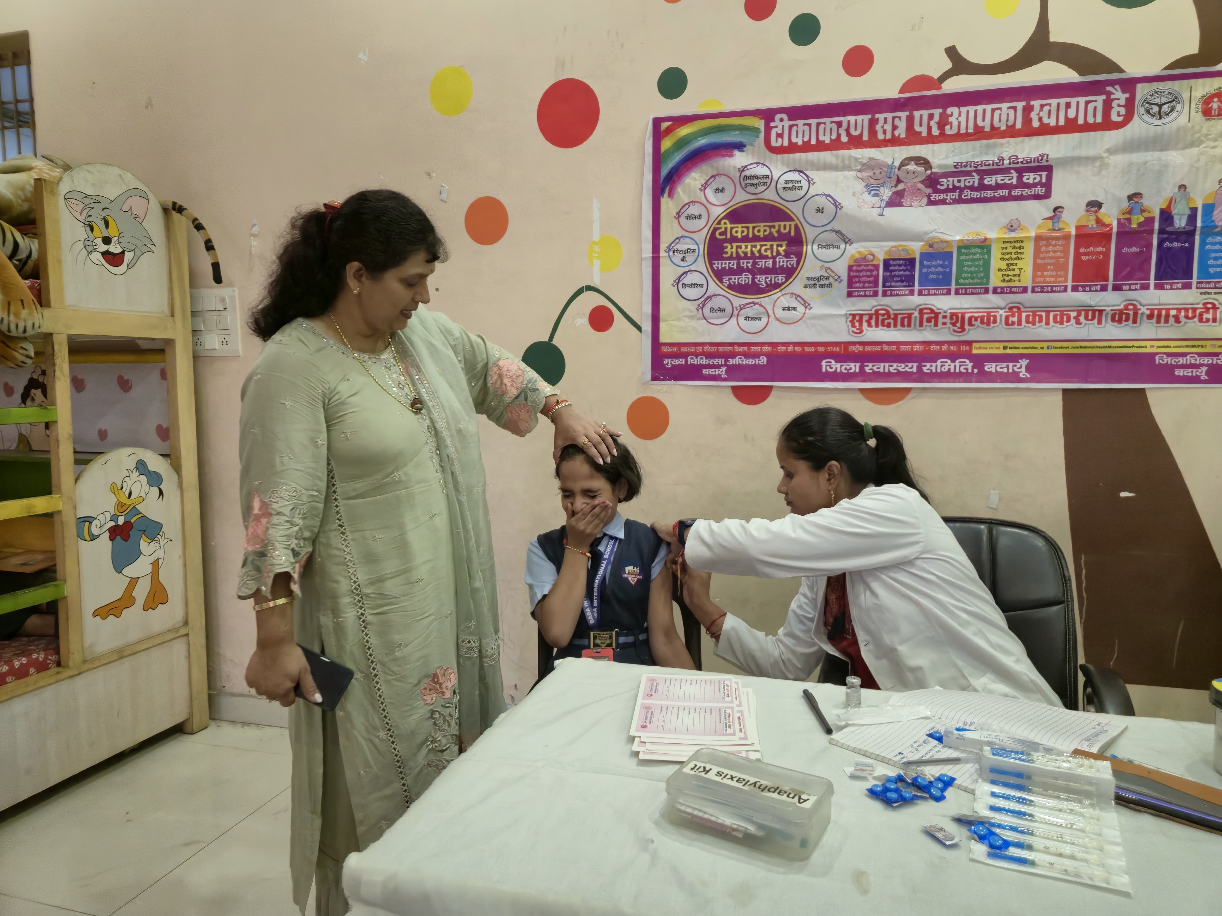 स्वास्थ्य विभाग की तरफ से बिल्सी सामुदायिक स्वास्थ्य केन्द्र के प्रभारी चिकित्सा अधिकारी डा० अरविन्द वर्मा , व श्रीमती टीनू शर्मा (बी.एच.डब्ल्यू.) की मौजूदगी में टीकाकरण संपन्न कराया गया |