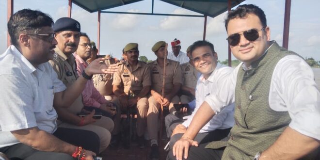 बदायूँ : 12 अगस्त। जिलाधिकारी अवनीश राय ने मंगलवार को तहसील दातागंज के ब्लॉक म्याऊं अंतर्गत बाढ़ संवेदनशील ग्राम हर्रामपुर का स्थलीय निरीक्षण कर स्थिति का जायजा लिया। निरीक्षण के दौरान डीएम ने ग्राम में की गई व्यवस्थाओं का बारीकी से अवलोकन किया। उन्होंने राहत सामग्री के भंडारण व वितरण, नाव एवं अन्य संसाधनों की उपलब्धता की जांच करते हुए निर्देशित किया कि ग्राम वासियों कोई परेशानी नहीं होना चाहिए।