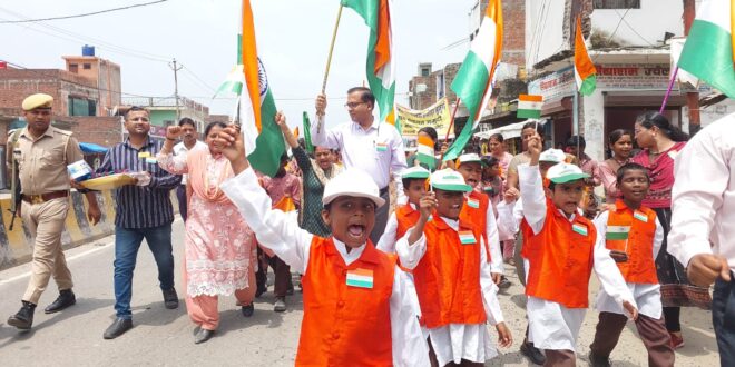 उन्होंने कहा कि जनपद के अमर शहीदों ने देश को आजाद कराने में अपने प्राणों की आहुतियां दी हैं। इसको आगे बढ़ाने के लिए प्रगति के पथ पर ले जाने के लिए राष्ट्र निर्माण में हम सब का महत्वपूर्ण योगदान हो सकता है। भारत विकसित राष्ट्र बनने की ओर अग्रसर है। देश प्रगति के पथ पर अग्रसर हो इसके लिए हमें चिंता करने और सक्रिय योगदान देने की जरूरत है । देश पुष्पित पल्लवित होकर विकसित राष्ट्र बने यही हम सबका उद्देश्य होना चाहिए। हर घर तिरंगा कार्यक्रम के तहत जगह पर तिरंगा रैली निकाल कर आम जनमानस को तिरंगा के माध्यम से आजादी के संघर्षों को याद दिलाया जा रहा है।