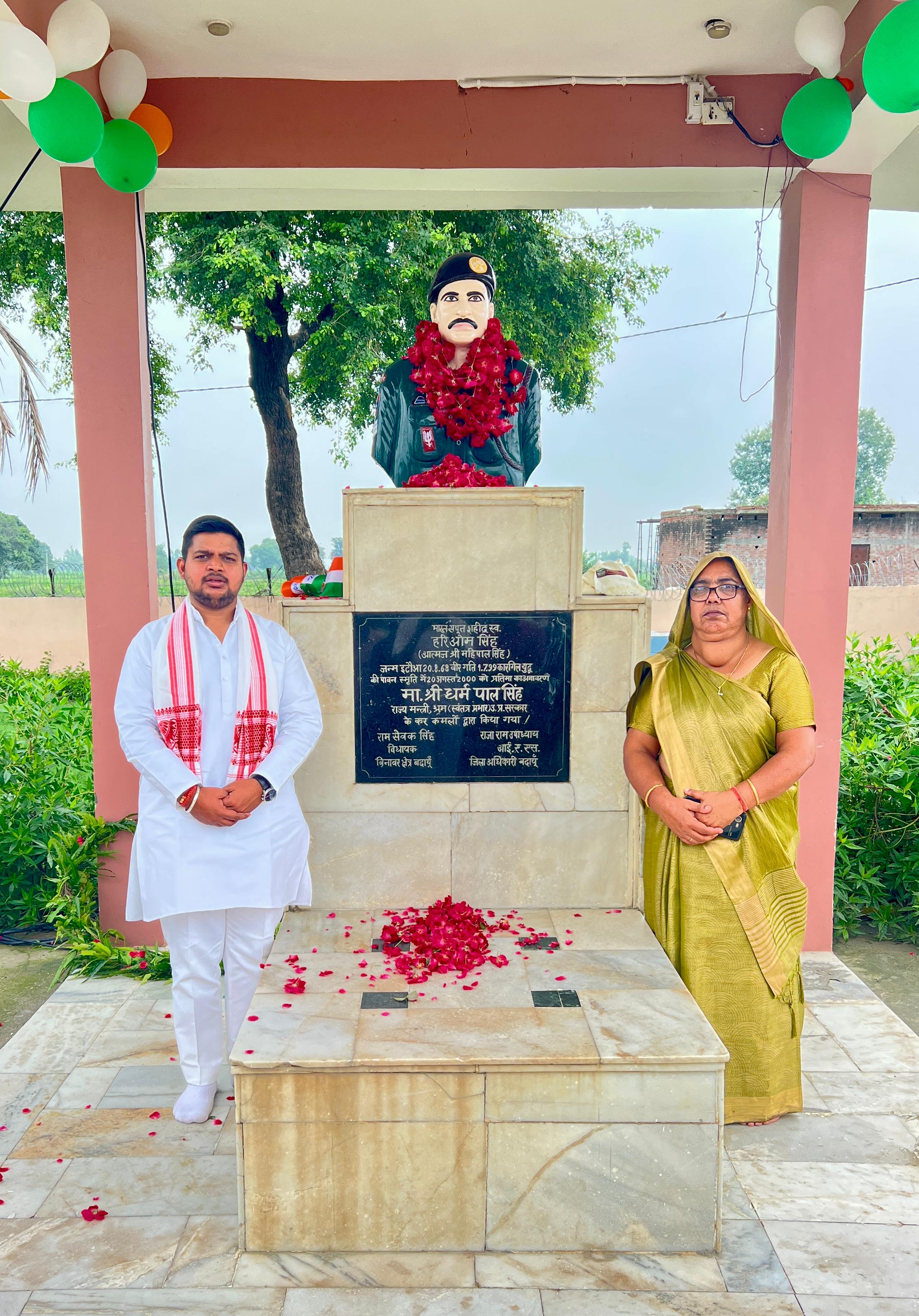 ग्राम हरिओम नगर इटोंआ में भारत के वीर सपूत कारगिल शहीद श्री हरिओम सिंह के शहीद स्मारक पर 79 वे स्वतंत्रता दिवस के अवसर पर ध्वजारोहण एवं उनकी प्रतिमा पर माल्यार्पण करके श्रद्धासुमन अर्पित किया