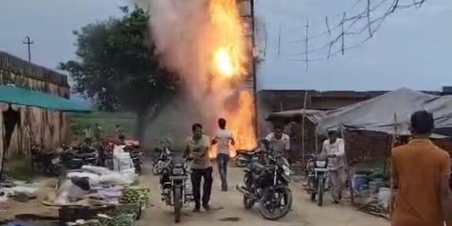 100 के ० वी ० ए विद्युत ट्रांसफार्मर में अचानक लगी आग , सब्जी बाजार में मची भगदड़