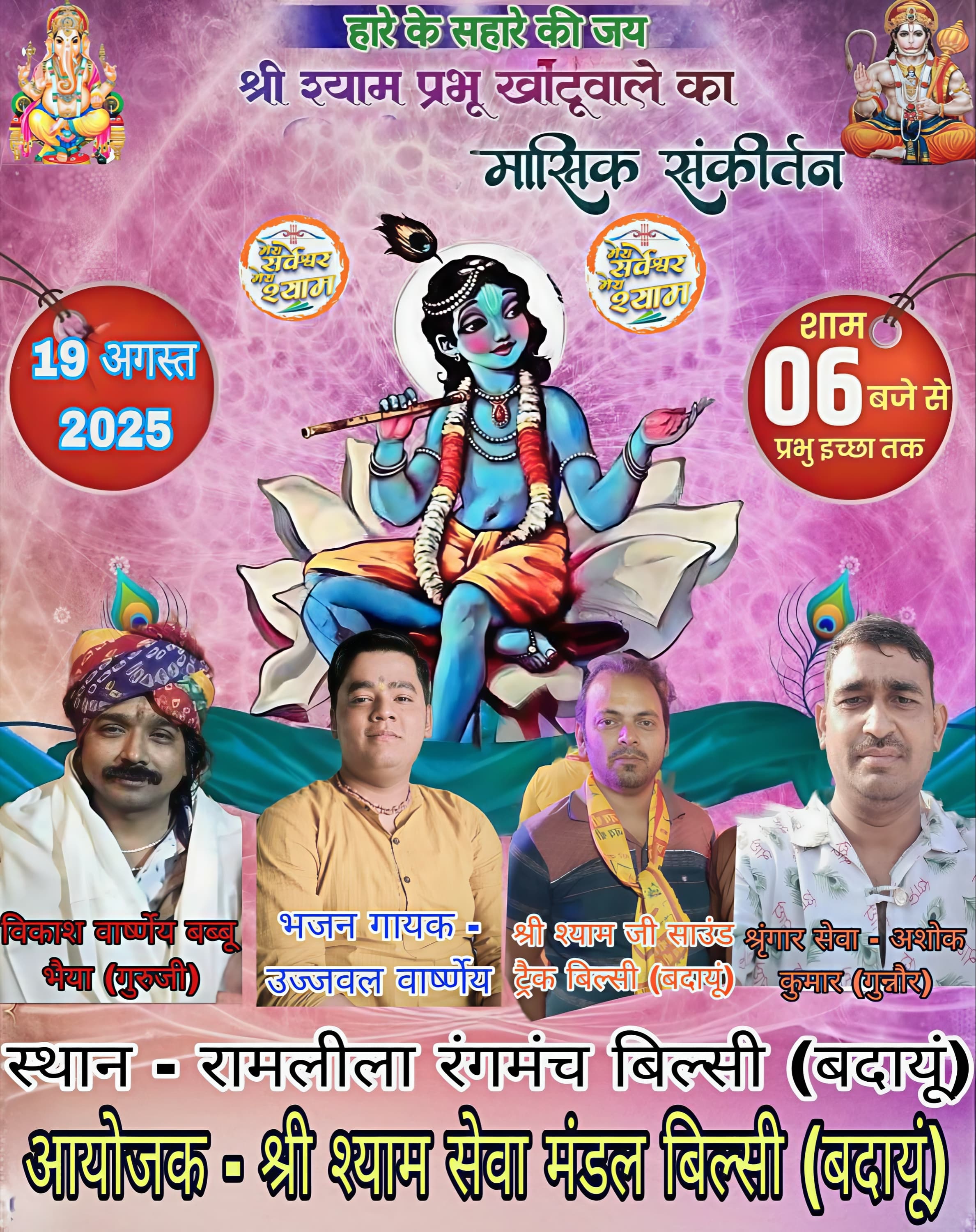 बिल्सी में श्री श्याम प्रभु खाटूवाले का मासिक संकीर्तन कल Govind Deval August 18, 2025 123 Views Spread the love Spread the love