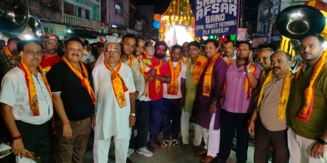 फतेहगंज पश्चिमी _ कृष्ण जन्माष्टमी के बाद दूसरे दिन कस्बे मे भगवान श्रीकृष्ण की शोभायात्रा बैंड बाजे के साथ बड़ी धूमधाम के साथ निकाली गई। इसी दौरान राधा कृष्ण, शंकर पार्वती गणेश, पवन पुत्र हनुमान, देवकी वासुदेव आदि प्रकार की झांकियां निकाली गई जो आकर्षण का केंद्र रही। शोभायात्रा का शुभारंभ सनातन धर्म वैश्य महासभा ठाकुर द्वारा मंदिर कमेटी के पदाधिकारीयों ने किया। शोभायात्रा प्रकाशी लाला के शिव मंदिर से शुरू हुई, जो कस्बे की में मार्केट होते हुए लोधी नगर चौराहे से घूमती हुई भिटौरा स्टेशन रोड घुंघरू बाबा मंदिर से होकर वापस ठाकुर द्वारा मंदिर पर पहुंचकर संपन्न हुई। कस्बे में शोभा यात्रा निकालने से पूर्व कपड़ा बाजार मे स्थित कुम्हारों वाले चौक पर मटकी फोड़ कार्यक्रम किया गया जिसमें कई टीमों ने हिस्सा लिया जिसमें हिमांशु मिश्रा की टीम ने बाजी मार कर मटकी फोड़ी। इसी तरह कस्बे के मुख्य मार्ग पर सीकों वाली गली के सामने ठाकुर द्वारा मंदिर कमेटी के द्वारा बहुत बड़ा मटकी फोड़ कार्यक्रम किया गया जिसमें कई टीमों ने हिस्सा लिया। जीतने वाली टीम को मंदिर कमेटी की तरफ से घोषित इनाम दिया गया। इसी तरह कस्बे में मनोहर मेडिकल स्टोर के सामने एवं भिटौरा और रेलवे स्टेशन के पास विधायक प्रतिनिधि संजय चौहान के घर के सामने मटकी फोड़ी गईं। इसी दौरान सरिया सीमेंट के वरिष्ठ व्यापारी सचिन चौहान एवं रेलवे के पूर्व ऑफिसर नेत्रपाल सिंह के द्वारा सभी भक्तगणों को केला अमरूद सेव मिठाई वितरण कराई गई। शोभायात्रा आयोजकों में कमेटी के अध्यक्ष नीरज गोयल, मंत्री राज कपूर गुप्ता, कोषाध्यक्ष श्याम सुंदर गुप्ता, अमित गोयल, अखिलेश अग्रवाल, गोविंद कुमार गुप्ता, अमित कुमार सिंह, नरेश ऐरन, विनोद अग्रवाल, दौलत राम गुप्ता, कैलाश अग्रवाल, पूर्व चेयरमैन विजय कुमार गुप्ता, कमल गुप्ता, डॉक्टर मुदित प्रताप सिंह, रमन जायसवाल, आशीष अग्रवाल, सूचित अग्रवाल, चक्रवीर सिंह चौहान, ओमेंद्र चौहान, शशांक गुप्ता, राजेश गुप्ता, पूर्व चेयरमैन कृष्णपाल मौर्य, रजत अग्रवाल, पूर्व चेयरमैन सरजू यादव, संजीव शर्मा, सूरज राठौर, गौरव मिश्रा, दुर्ग पाल सिंह, दीपू ठाकुर, गौरव मिश्रा, जगत सिंह उर्फ सनी, राजेश अग्रवाल, शशांक अग्रवाल, प्रशांत अग्रवाल, दौलत राम गुप्ता, मयंक अग्रवाल, आशीष बंसल आदि पदाधिकार एवं कस्बे के प्रमुख समाजसेवी कार्यक्रम में मौजूद रहे। सुरक्षा के मद्देनजर चौकी प्रभारी अनूप सिंह भारी पुलिस बल के साथ मुस्तैद रहे।