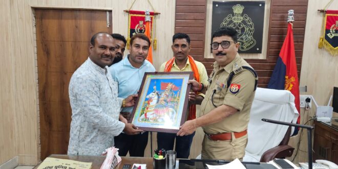 बदायूं वरिष्ठ पुलिस अधीक्षक डॉक्टर बृजेश कुमार सिंह को भाजपा मंडल अध्यक्ष राघव चौहान एवं सुनील ठाकुर,ललतेश ठाकुर ने महाराणा प्रताप का चित्र देकर SSP बदायूं को सम्मानित किया।