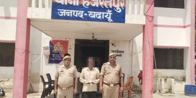 वरिष्ठ पुलिस अधीक्षक जनपद बदायूं,डा0 बृजेश कुमार सिंह के आदेशानुसार वाछिंत/वारंटी अभियुक्तो की गिरफ्तारी हेतु जनपद में चलाए जा रहे अभियान के अन्तर्गत अपर पुलिस अधीक्षक नगर के निर्देशन में क्षेत्राधिकारी दातागंज के पर्यवेक्षण में तथा थाना प्रभारी हजरतपुर के कुशल नेतृत्व में थाना हजरतपुर पुलिस द्वारा सम्बन्धित मु0अ0सं0 129/2025 धारा 3/25(1-B)(a) आर्म्स एक्ट बनाम चुकन्नी उर्फ छोटेलाल पुत्र नन्द किशोर निवासी ग्राम लभारी थाना हजरतपुर जनपद बदायूँ को मय एक अदद तमंचा नाजायज 315 बोर, एक अदद जिंदा कारतूस 315 बोर सहित आज दिनांक 20.08.2025 गिरफ्तार कर माननीय न्यायालय के समक्ष पेश किया गया।