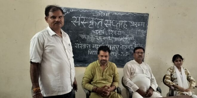 बदायूं आज संस्कृत महाविद्यालय बेदामऊ वैदिक विद्यापीठ बदायूं में चल रहे संस्कृत सप्ताह समारोह के अंतर्गत चौथे दिन के कार्यक्रम में उपस्थित संस्कृत के विद्वानों द्वारा वेद पुराण उपनिषद एवं छंद शास्त्र आदि के बारे में तथा इन ग्रंथो के महत्वपूर्ण अंशु की व्याख्या के द्वारा छात्र एवं छात्राओं को अवगत कराया गया संस्कृत सप्ताह समारोह कार्यक्रम में उपस्थित मुख्य अतिथि गुरुकुल सूर्यकुंड संस्कृत महाविद्यालय बदायूं के प्राचार्य वेद रतन आर्य ने संस्कृत एवं विज्ञान का संबंध के द्वारा अपने वक्तव्य के माध्यम से विस्तार से समझा कर कहा कि वर्तमान समय में संस्कृत और विज्ञान का सामंजस्य परम आवश्यक है जिसके द्वारा संस्कृत और संस्कृत भाषा मजबूत होगी इस शुभ अवसर पर विद्यालय के प्राचार्य श्री वेद मित्र आर्य जी ने कार्यक्रम में उपस्थित संस्कृत के विद्वानों का आभार व्यक्त किया तथा संस्कृत के प्रति सभी विद्वानों से संस्कृत भाषा के प्रचार एवं प्रसार में सहयोग देकर निरंतर उसके विकास के लिए अनवरत कार्य करते रहें ऐसी मेरी कामना है उन्होंने छात्र-छात्राओं को अपना आशीर्वाद दिया तथा उनका संस्कृत के प्रति उनका उत्साह वर्धन किया कार्यक्रम में उपस्थित विद्यालय के साहित्य विभाग अध्यक्ष श्री शिव सिंह यादवव्याकरण विभाग अध्यक्ष आचार्य सर्वेश कुमार गुप्त आधुनिक विषय विभाग की अध्यक्ष श्रीमती अंकित गुप्ता पोयम बेबी एवं छात्र-छात्राएं उपस्थित रहे कार्यक्रम का संचालन विद्यालय के व्याकरण विभाग अध्यक्ष आचार्य श्री सर्वेश कुमार गुप्तजी ने किया तदुपरांत शांति पाठ के बाद कार्यक्रम संपन्न हुआ
