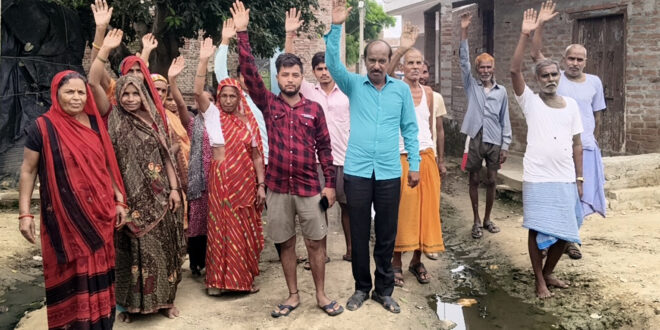 टूटी सड़क और जलभराव को लेकर जरसैनी में किया प्रदर्शन