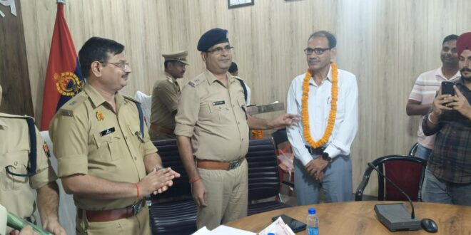 बदायूँ से अधिवर्षिता आयु पूर्ण कर सेवानिवृत्त हुये म0 नि0 ना0पु0 श्रीमती सिमरजीत कौर, उ0नि0 ना0पु0 ढालगोपाल सिंह एवं उर्दू अनुवादक अतहर अली खॉ को रिजर्व पुलिस लाइन जनपद बदायूँ सभागार कक्ष में अपर पुलिस अधीक्षक ग्रामीण डॉ0 ह्रदेश कठेरिया द्वारा उन्हें शॉल,पुष्पहार से सम्मानित कर प्रशस्ति पत्र प्रदान किये गये एवं सेवानिवृत्त अधि0/कर्मचारियों का परिचय पढ़ते हुए पुलिस परिवार कीतरफ से इनके उज्ज्वल भविष्य की कामना की गयी । इस अवसर पर अपर पुलिस अधीक्षक नगर विजयेन्द्र द्विवेदी,क्षेत्राधिकारी आरटीसी गौरव उपाध्याय,प्रतिसार निरीक्षक इन्द्रजीत सिंह एवं पुलिस के अन्य अधि/कर्मचारीगण तथा सेवानिवृत्त अधि0/कर्मचारियों के परिवारजन विदाई समारोह में उपस्थित हुय़े ।