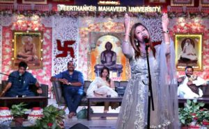 मुरादाबाद। तीर्थंकर महावीर यूनिवर्सिटी, मुरादाबाद का रिद्धि-सिद्धि भवन कवियों की शब्दोपासना से सुगंधित हो उठा। इस कवि सम्मेलन में कवयित्री डॉ. अनामिका जैन अंबर, सौरभ सुमन, दमदार बनारसी, विनोद पाल और श्रीमती शिखा श्रीवास्तव के आस्थामय गीतों और भजनों पर सैकड़ों श्रावक और श्राविकाएं बार-बार झूमते नज़र आए। स्टुडेंट्स में अपने पसंदीदा कवियों की फोटो के संग-संग लाइव वीडियो भी लेने की होड़ लगी रही। वाह-वाही के संग तालियों की गड़गड़ाहट कवियों की हौसलाफजाई करती रही। डॉ. अनामिका जैन अंबर ने जैन शब्दोपासना के जरिए धर्म के प्रति अपनी श्रद्धा और सम्मान व्यक्त किया। उन्होंने नवकार महामन्त्र से अपना काव्य पाठ आरंभ किया। डॉ. अंबर बोलीं, तीरथ अपना मांग रहे हां अधिकार हमारा है…हमें जान से प्यारा है जो, वो गिरनार हमारा है…। जैन कवयित्री डॉ. अनामिका ने कहा, मेरे ईश्वर मेरे भगवन मेरा विश्वास न टूटे. जीवन की जो तुमसे है प्रभु कभी वो आस न टूटे…। कवयित्री शिखा श्रीवास्तव ने मां का भजन, जबकि श्री सौरभ सुमन ने हल्दीघाटी पर वीर रस का पाठ किया। दमदार बनारसी और विनोद पाल ने भी अपनी-अपनी विधा में मेहमानों और स्टुडेंट्स का दिल जीत लिया।