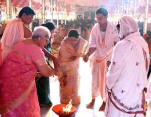 सांस्कृतिक संध्या से पूर्व फिजियोथैरेपी की एचओडी प्रो. शिवानी एम. कौल को श्रीजी की आरती को दिव्य घोष के बीच जिनालय से रिद्धि-सिद्धि भवन तक ले जाने का सौभाग्य मिला। इस मौके पर श्री नंदकिशोर साह, श्री हरीश शर्मा, श्रीमती हिमानी, श्री रंजीत तिवारी, मिस समर्पिता सेनापति, मिस नीलम चौहान, मिस मुस्कान जैन आदि मौजूद रहे। दूसरी ओर मंगलचारण के संग डिपार्टमेंट ऑफ फिजियोथैरेपी के स्टुडेंट्स की ओर से ऑडी में भगवान पार्श्वनाथ की जीवनी नाटक मंचन का शंखनाद हुआ। प्ले के संग-संग संगीत-नृत्य के जरिए भगवान पार्श्वनाथ के पंच कल्याणक- गर्भ, जन्म, तप, ज्ञान और मोक्ष भक्तिभाव से प्रस्तुत किए गए। फिजियोथैरेपी के स्टुडेंट्स निहाल जैन ने भगवान पार्श्वनाथ, रिशिका जैन ने माता वामादेवी, संयम जैन ने पिता अश्वसेन की भूमिका निभाई, जबकि जयंत जैन, भूमि अहाले और कशिश जैन नेरेटर की भूमिका में रहे। नाटक में 30 जैन श्रावक-श्राविकाओं ने प्रतिभाग किया। इस मौके पर वीसी प्रो. वीके जैन ने फिजियोथैरेपी के 06, एमडीएस के 04 और बीडीएस के 05 फाइनल ईयर स्टुडेंट्स को टीएमयू का स्मृति चिन्ह देकर सम्मानित भी किया।