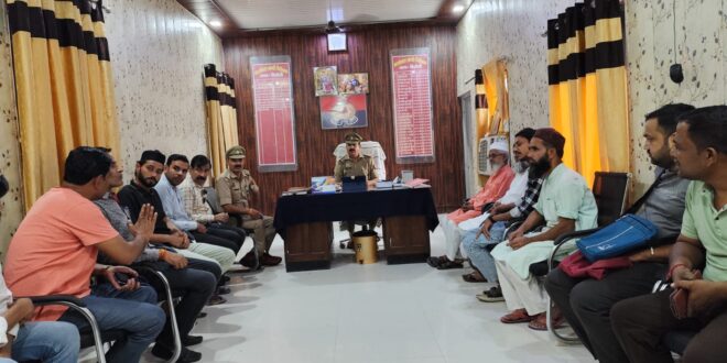 बिसौली। मंगलवार को बारह रबीउल अव्वल और गणेश चतुर्थी के जुलूस को लेकर पीस कमेटी की महत्वपूर्ण बैठक कोतवाली में आयोजित की गई। जहां सभी से त्योहारों को शांतिपूर्ण माहौल में मनाने पर विशेष जोर दिया गया। पुलिस इंस्पेक्टर हरेंद्र सिंह ने कहा कि सभी लोग अपने-अपने त्यौहार को श्रद्धा और उल्लास से मनाएं। उन्होंने सांप्रदायिक सौहार्द बनाए रखने की अपील की। उन्होंने स्पष्ट रूप से कहा कि जो भी व्यक्ति कानून व्यवस्था को बाधित करने की कोशिश करेगा उसके खिलाफ सख्त कानूनी कार्रवाई की जाएगी। इस दौरान क्राइम इंस्पेक्टर सेंसर पाल सिंह, एड. अनूप शर्मा, एड. सचिन सक्सेना, मशहूद खां हमदम, मुन्ने खां, मदरसे के प्रिंसिपल मौलाना इफ्तेखार अहमद अशरफी, राजेश मराठा, गांव पपगांव से मस्जिद के इमाम मौलाना मो. असलम रजा, समाजसेवी आरिफ खान, शाकिर अहमद, गोपाल शर्मा, रजत साहनी, कुलदीप रस्तोगी, मो. उमर आदि मौजूद रहे।