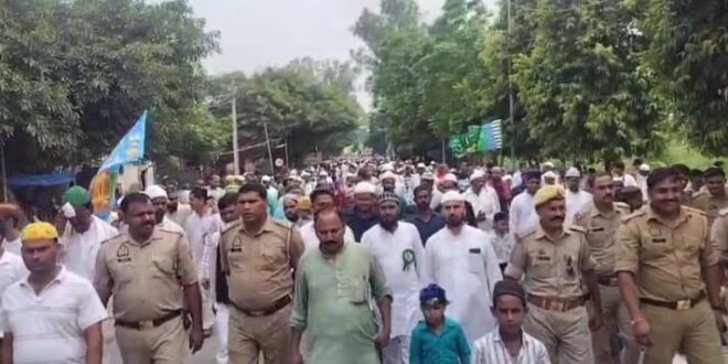शान ओ शौकत के साथ नगर उसहैत में पुलिस सुरक्षा के बीच निकाला गया जुलूस ए मुहम्मदी