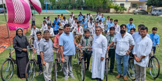 बिसौली। डी पॉल स्कूल में शनिवार को साइकिल वितरण कार्यक्रम आयोजित किया गया। कार्यक्रम का शुभारंभ मुख्य अतिथि तहसीलदार विजय कुमार शुक्ला एवं विद्यालय के प्रबंधक फादर डा. मार्टिन वी.सी. द्वारा दीप प्रज्ज्वलित कर किया गया। श्री शुक्ला ने छात्र-छात्राओं को संबोधित करते हुए शिक्षा के प्रति उनका रुझान बढ़ाने के लिए उत्साहवर्धन किया उन्होंने विद्यार्थियों को संबोधित करते हुए कहा कि ग्रामीण क्षेत्र के बच्चों को विद्यालय आने जाने में साइकिलों से सुविधा होगी तथा शिक्षा के प्रति उनमें उत्साह बढ़ेगा। विद्यालय के प्रबंधक मार्टिन वी.सी. ने छात्र-छात्राओं के उज्जवल भविष्य की कामना करते हुए उन्हें सफलता के पथ पर अग्रसर होने के लिए मार्गदर्शन किया। इस अवसर पर फादर अनीष, फादर अजिन, अभिषेक पाण्डेय आदि मौजूद रहे।