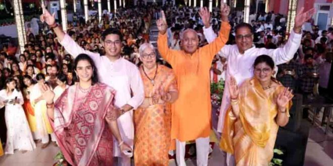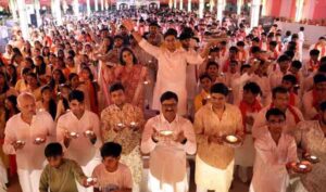 इससे पूर्व कुलाधिपति परिवार की ओर से श्रीमती जहान्वी जैन और श्री अक्षत जैन संवृद्धि से महाआरती लेकर सभी फैकल्टीज़ और स्टुडेंट्स के साथ सीधे जिनालय पहुंचे। वहां पूजा-अर्चना के बाद महाआरती रिद्धि-सिद्धि भवन पहुंचीं। विधि- विधान से यहां महाआरती प्रतिष्ठाचार्य ऋषभ जैन शास्त्री जी के सानिध्य में हुई। भगवान महावीर के जयकारों से टीएमयू कैंपस गूंजायमान हो उठा। सचिन एंड पार्टी ने पारस प्रभु तेरी ऊंची है डागरिया, विद्या सागर नाम रे, ढोल बाजे डम डम, चलो बुलाया आया है, बाबा ने बुलाया है…, पारस प्यार लागे…, मीठे रस से भरी…, विद्यासागर जी महाराज आओ मेरी आंगनिया…, महावीर बोलो महावीर…, केसरिया- केसरिया… टीएमयू का बच्चा-बच्चा जय जय महावीर बोलेगा, एक ही नाम गूंजेगा जय जय महावीर………सरीखे आस्थामय गीतों पर सैकड़ों श्रावक-श्राविकाओं के संग-संग कुलाधिपति, फर्स्ट लेडी, जीवीसी, ईडी समेत परिवार के सभी सदस्य झूमते नज़र आए। महाआरती में ब्रहमचारिणी कल्पना दीदी, प्रो. एसके जैन, प्रो. विपिन जैन, श्री मनोज जैन, प्रो. पी.के. जैन, डॉ. नम्रता जैन, डॉ. विनोद जैन, डॉ. विनीता जैन, श्रीमती आरती जैन, डॉ. अक्षय जैन, श्री आदित्य जैन, श्रीमती विनीता जैन, श्रीमती निकिता जैन, श्रीमती रितु जैन, श्रीमती स्वाति जैन, श्री सार्थक जैन आदि की भी उल्लेखनीय उपस्थित रही।